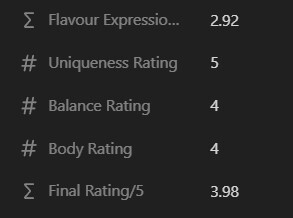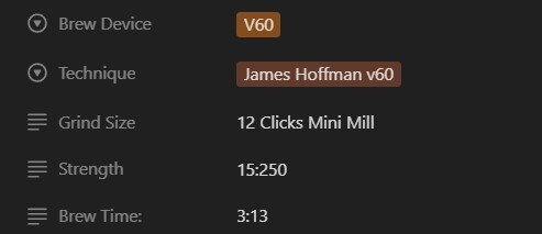 The main database shows you the most important details of the coffee along with a qualitative and quantitative rating. The relational databases let you record the brew method and flavour notes of the coffee.